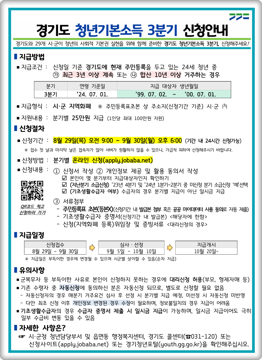 경기도 청년기본 소득 3분기 신청안내에 대해서 알려드릴게요.