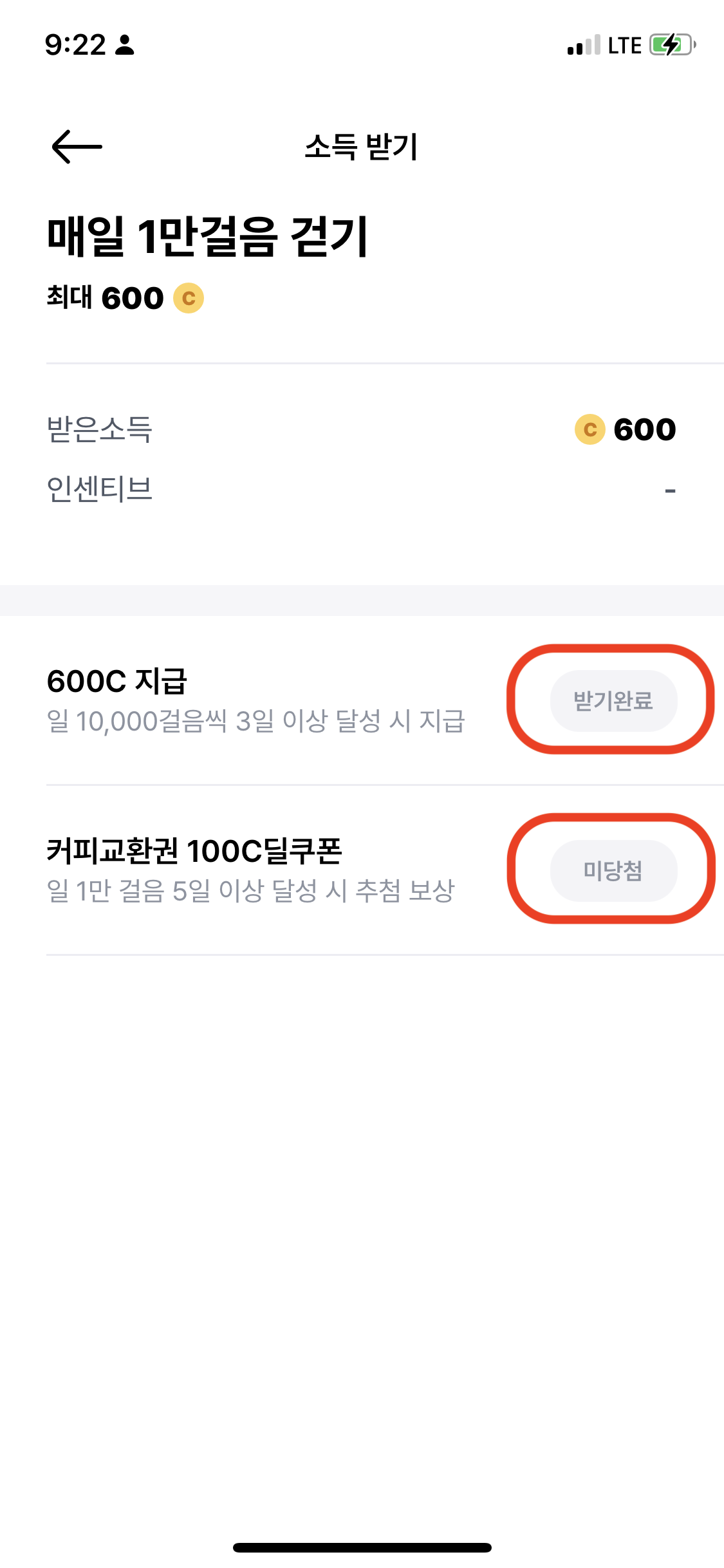 소득받기 버튼이 활성화되면 이렇게 포인트를 받고 커피교환권을 추첨을 통해서 받는것도 가능한데요.