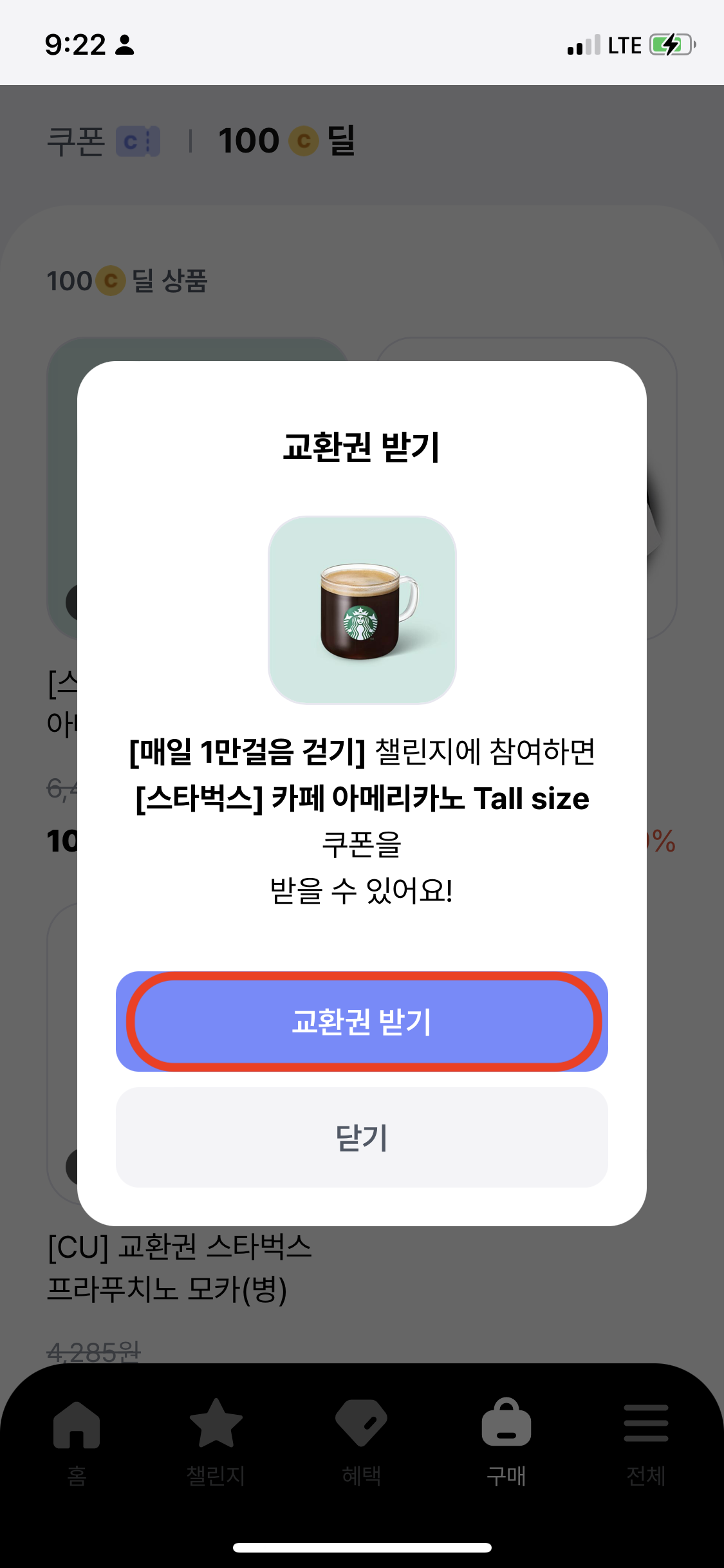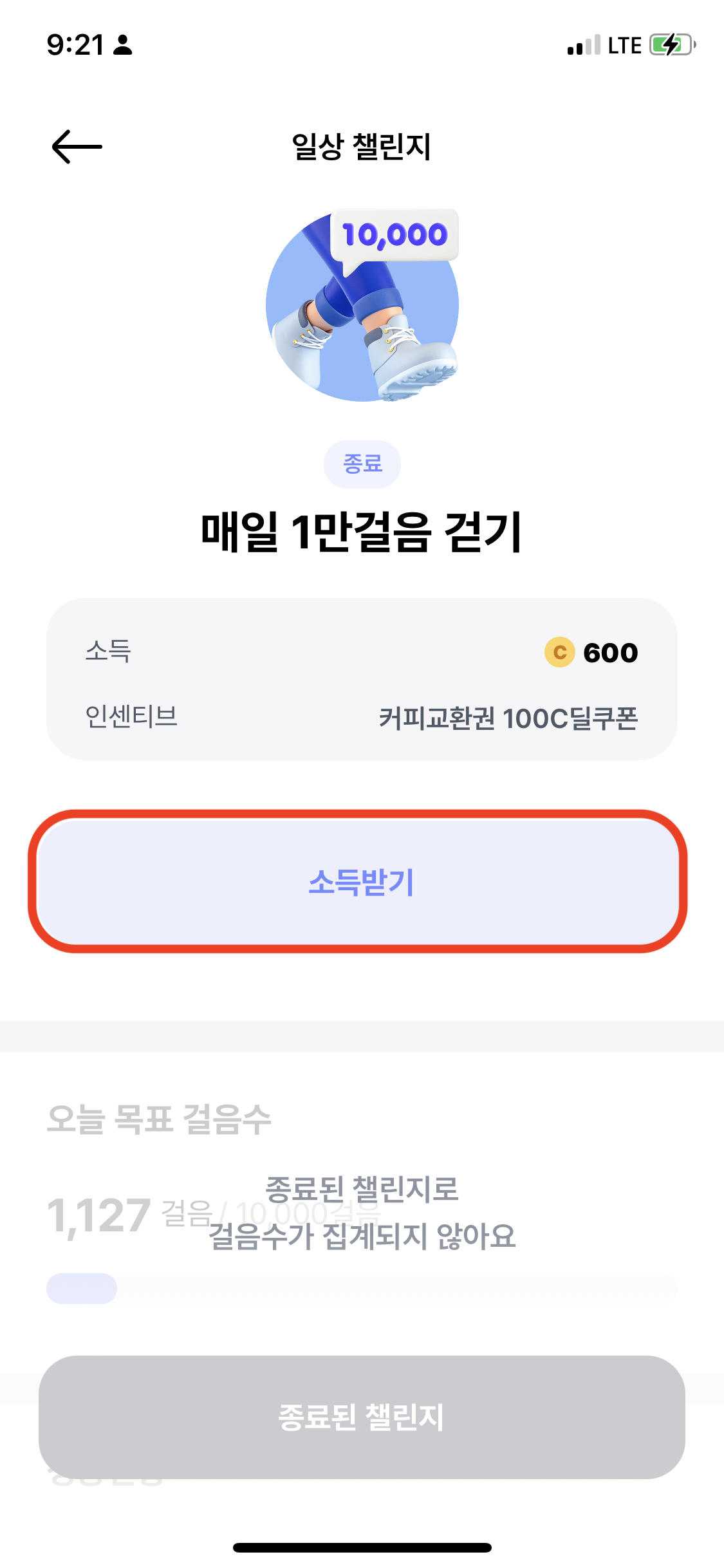 5일동안 1만걸음을 걷게되면서 보상을 받을수 있었습니다.