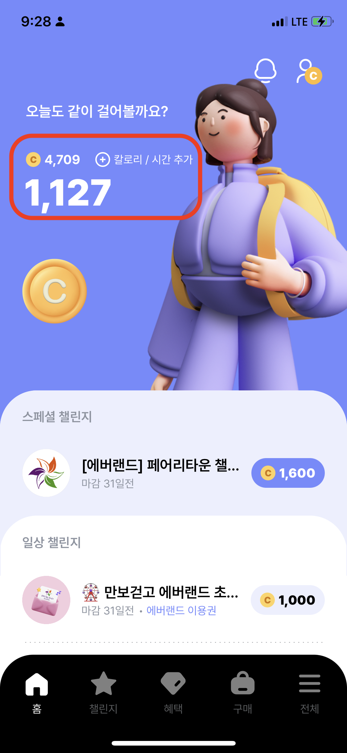저같은 경우에는 매일 1만걸음 걷기 챌린지를 도전했구요.