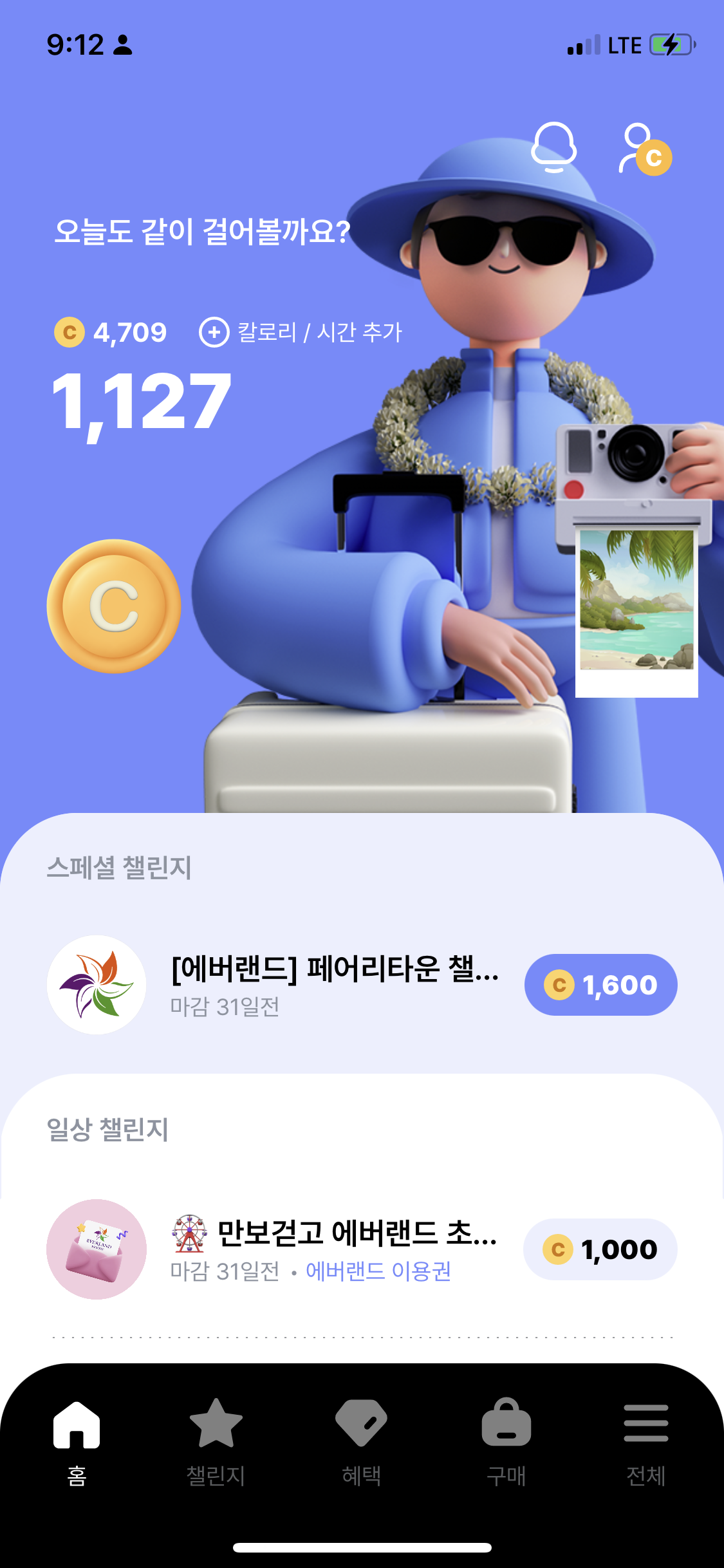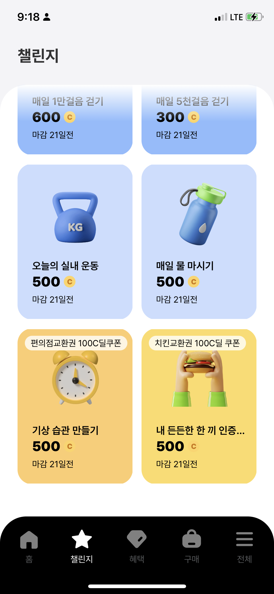 1주일동안 총 3개의 챌린지를 도전할수있구요.