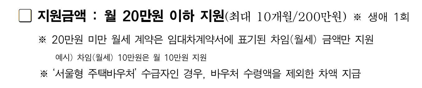 서울시 청년월세지원 신청 대상