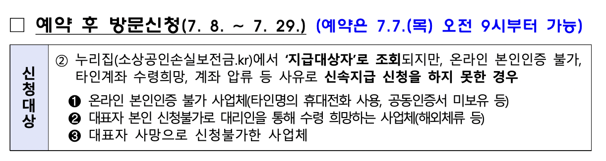 그리고 온라인으로 본인인증이 불가능하거나 타인계좌로 손실보전금을 지급받고 싶으신분들은 예약후 방문신청 하면 된다고 합니다. 예약은 홈페이지 또는 ARS 를 통해서 하는 것이 가능합니다.