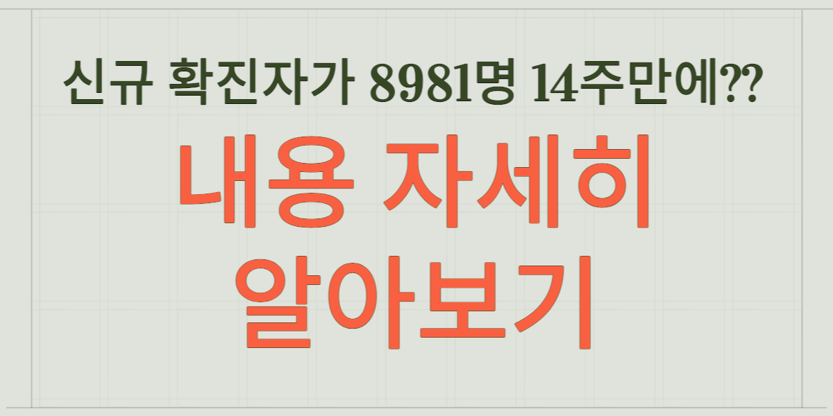 줄어들지 않을것 같던 코로나 19 신규확진자 숫자가 8981명 14주만에 1만명 밑으로 나타났다고 합니다. 올해 7월초까지는 1만명을 꾸준히 넘으며 아직은 경계를 풀기엔 시기상조라는 느낌을 많이 받았었는데요. 이렇게 8981명 14주만에 줄어들어서 한결 안심이 되는것 같습니다.