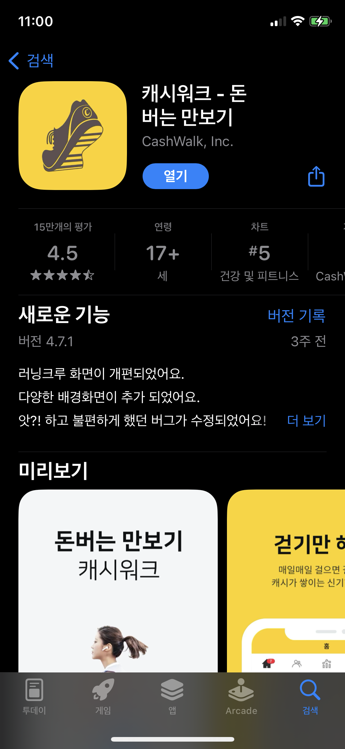 캐시워크는 2017년에 나온 만보기앱으로 처음 출시되었을때 매일 접속자가 560만명을 기록할정도로 엄청난 인기를 끌업던 앱이었습니다. 그렇기 때문에 이미 알고있으신분들도 많으실것 같구요. 저도 알기는 오래전부터 알았던것 같긴합니다 ^^