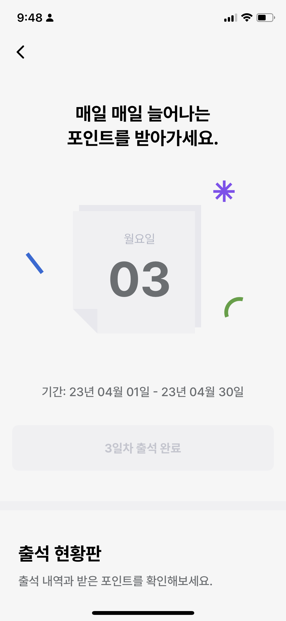 바로 상단에 있는 출석체크를 사용하는 것입니다. 출석 체크는 매일 1번씩 할수있는 방법이구요.
