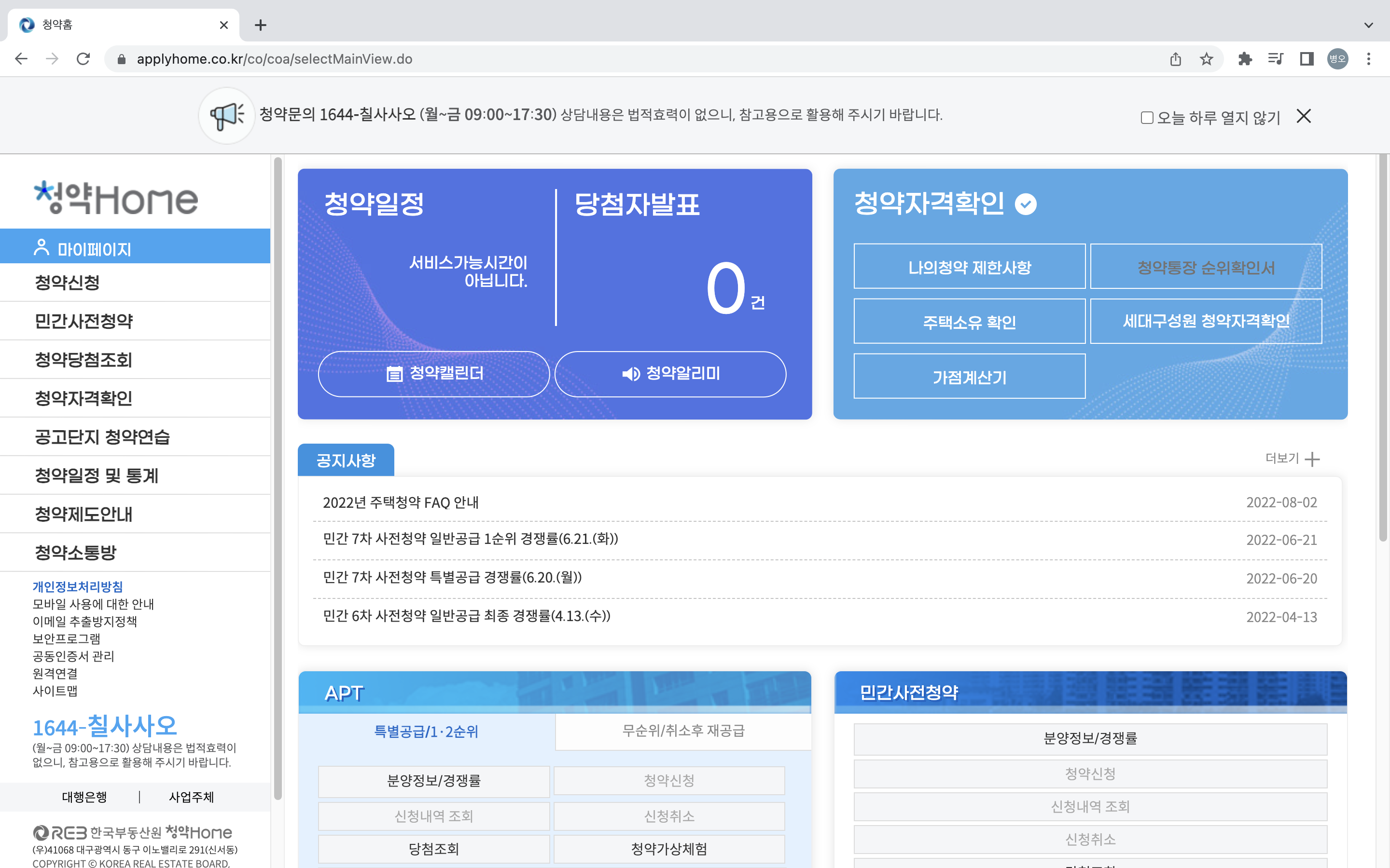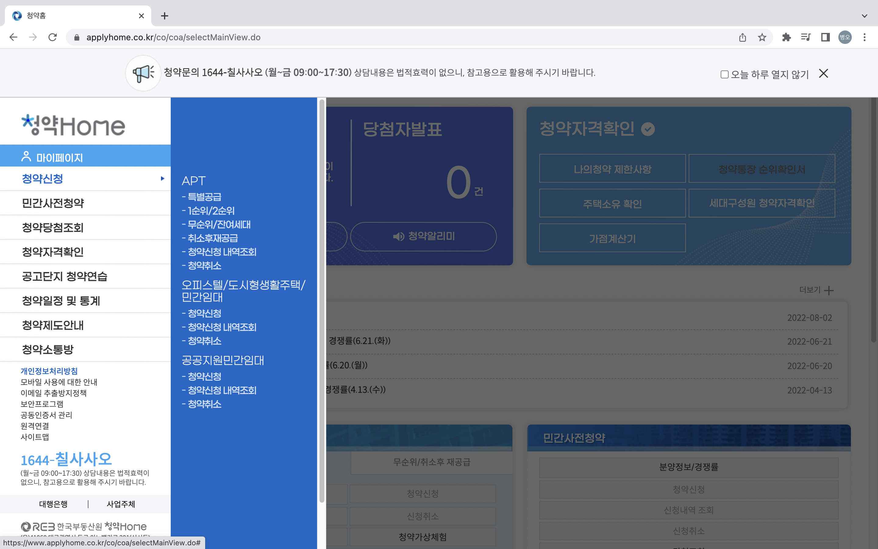 마지막 청약 Home 에서 신청하기