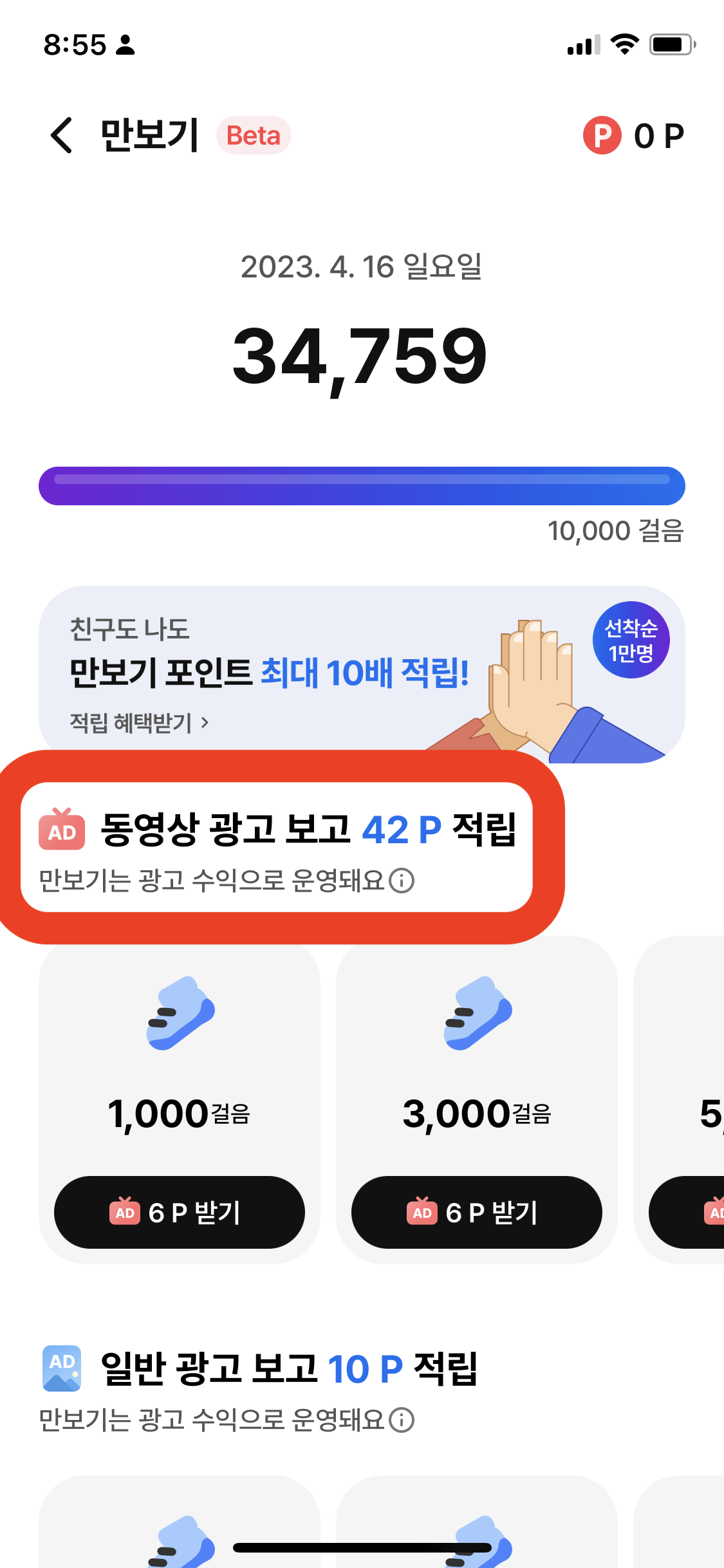 하루 기본적으로 챙길수 있는 총 52P 라는 말이고 매번 받을때마다 광고를 무려 20편이나 봐야하기 때문에 가성비 부분에서 그리 좋지 않은 모습을 보여주는 것 같습니다. (역시 챌린저스는 챌린지 용도로 사용해야지 만보기 만으로 사용하기에는 부족함이 있는것 같습니다.)
