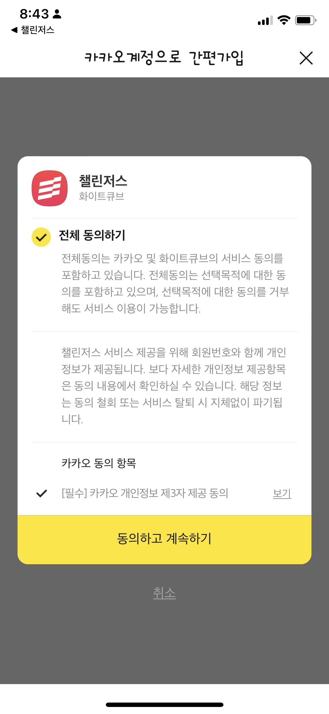 그렇다면 본격적으로 챌린저스 앱을 실행해 보겠습니다.