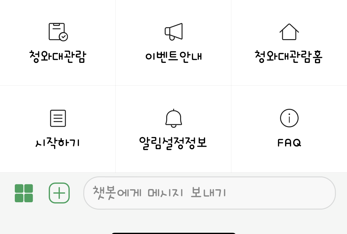 이렇게 카카오톡 국민비서 구삐를 통해서 청와대 관람을 선택할수 있게 나옵니다.