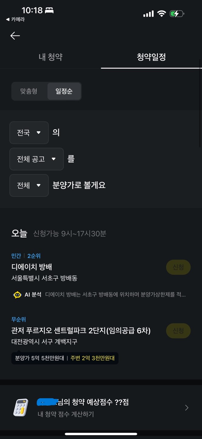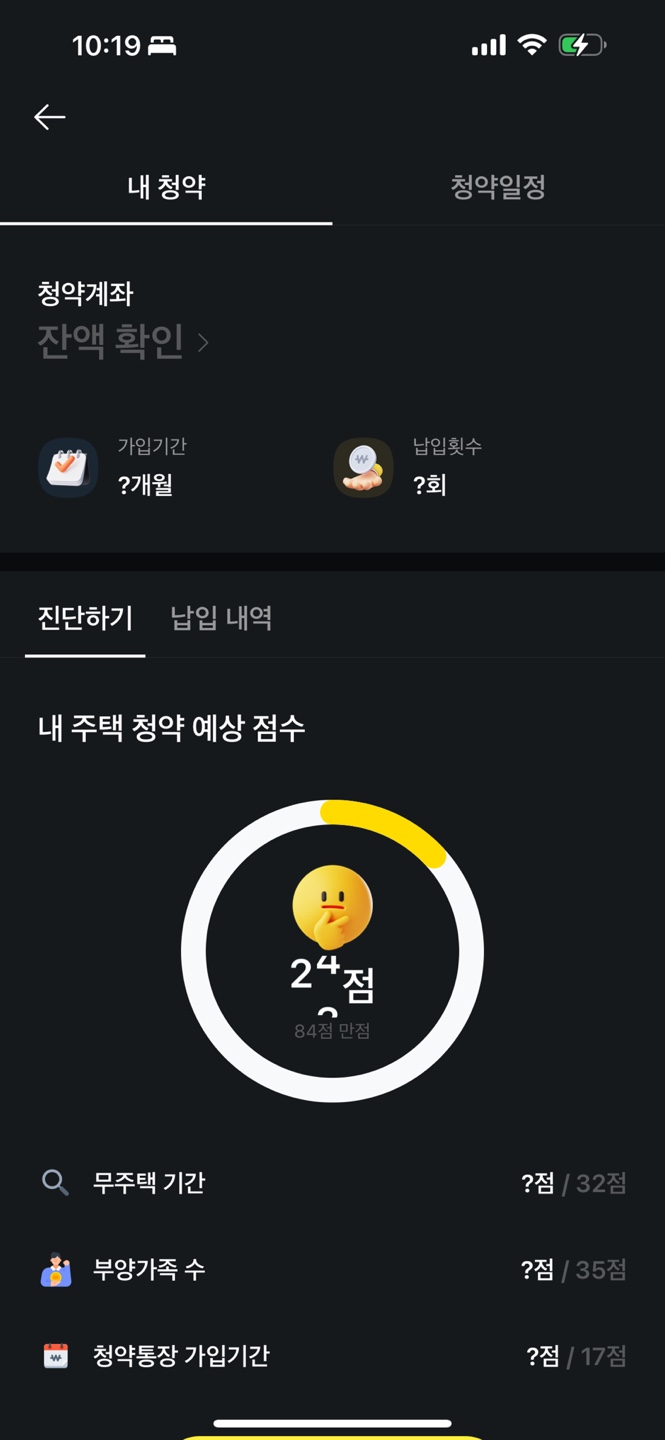 더해서 내청약 계좌를 등록하여 주택 청약 예상점수를 미리 환상해볼수도 있기 때문에 지금 나의 청약 예상점수와 1순위 조건 충족 여부에 대해서도 확인해볼수 있겠습니다.