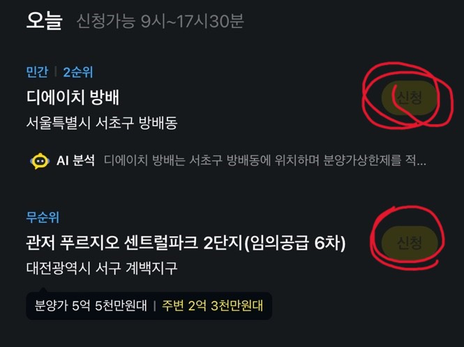 2. 청약일정에서 오른쪽에 있는 신청 버튼을 눌러주면 끝입니다.