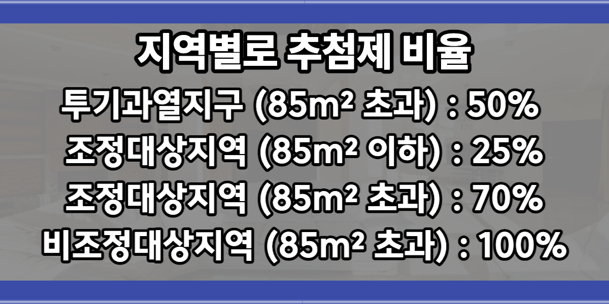 지역별로 가점제와 추첨제를 뽑는 비율은 아래와 같습니다.