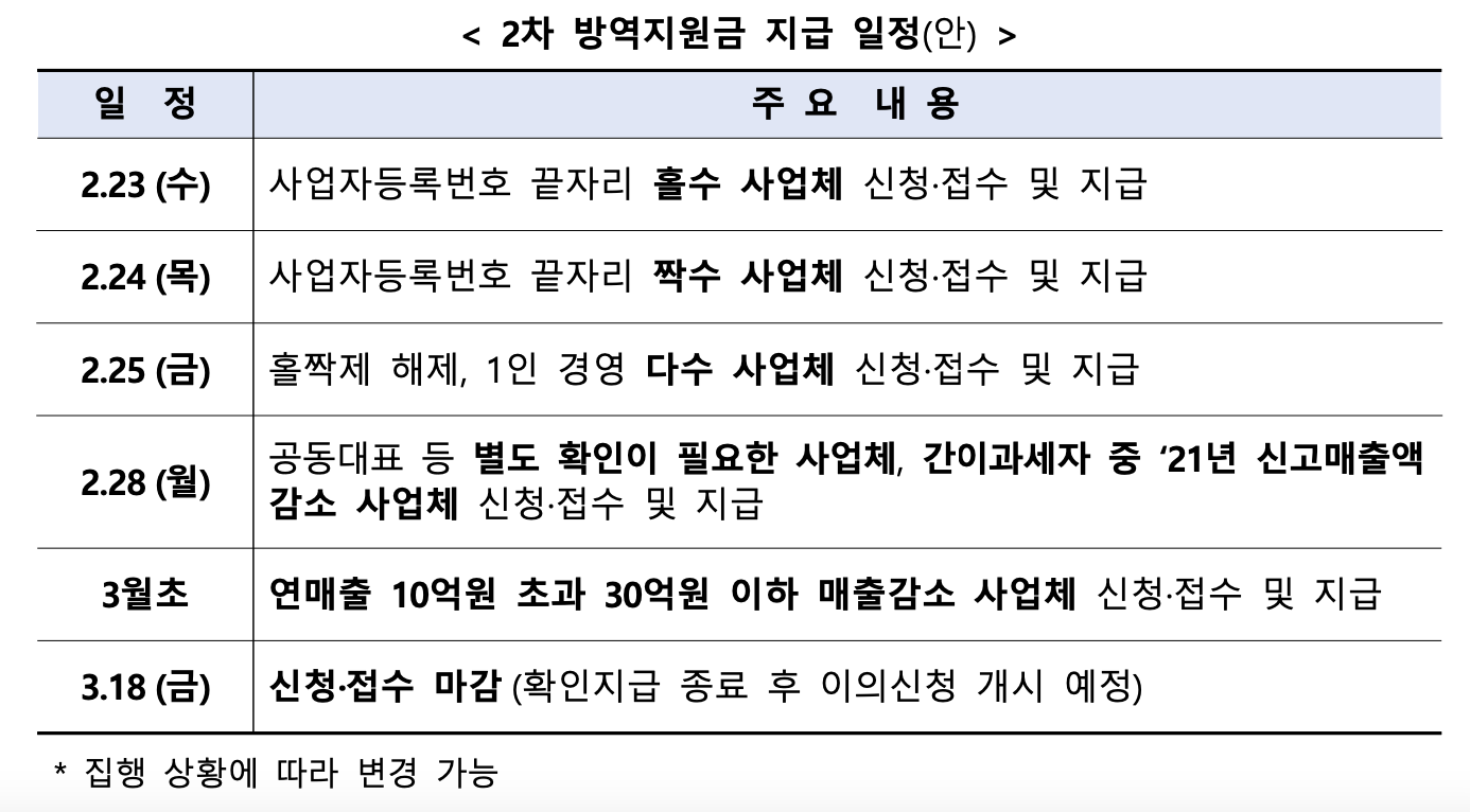 이상 2차 방역지원금에 대한 이야기를 마치겠습니다.
