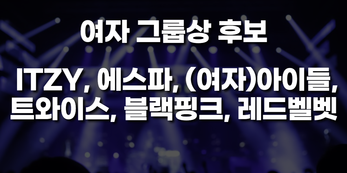 여자 그룹상 후보로 ITZY, 에스파, (여자)아이들, 트와이스, 블랙핑크, 레드벨벳으로 완전 쟁쟁한 후보들이 나왔습니다. 사실 여자그룹상 후보는 누가 상을 받아도 이상하지 않기때문에 정말 기대가 되는것 같습니다.