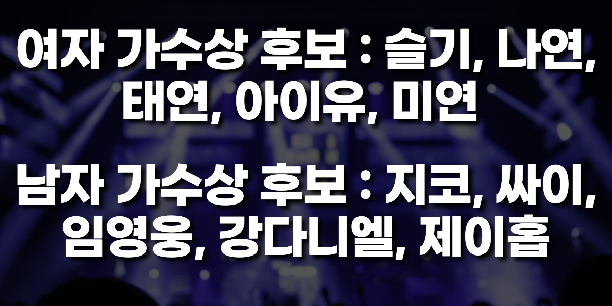 제가 각분야 별로 본상 후보들을 정리해보았는데요. 여러분들이 좋아하는 가수들이 있는지 한번 확인해보세요!