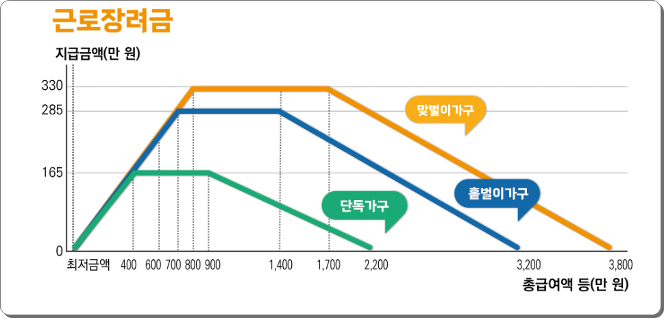 근로 장려금 산정시 반기 신청자의 총 급여액 등을 기준으로 하여 예상 연간 산정액을 계산합니다.