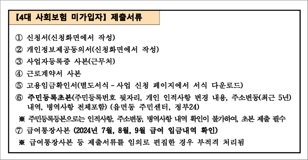 제출서류는 4대 사회보험 가입자와 4대 사회보험 미가입자 제출서류가 각각 다르기 때문에 지금 내가 어느곳에 해당하는지 잘 생각하셔서 골라봐야 합니다. 아래에 적어드릴테니 나에게 맞는 서류가 무엇인지 잘 확인해보시길 바라겠습니다.