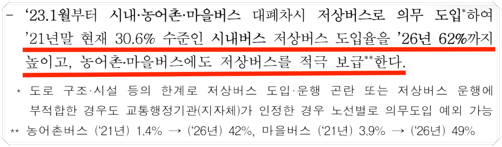 앞으로 약 3달뒤면 오게 되는 2023년 1월부터 저상버스를 본격적으로 도입하게 되고 5년뒤인 2026년에는 30.6% 에서 62% 까지 보급하는 것을 목표로 한다고 합니다.